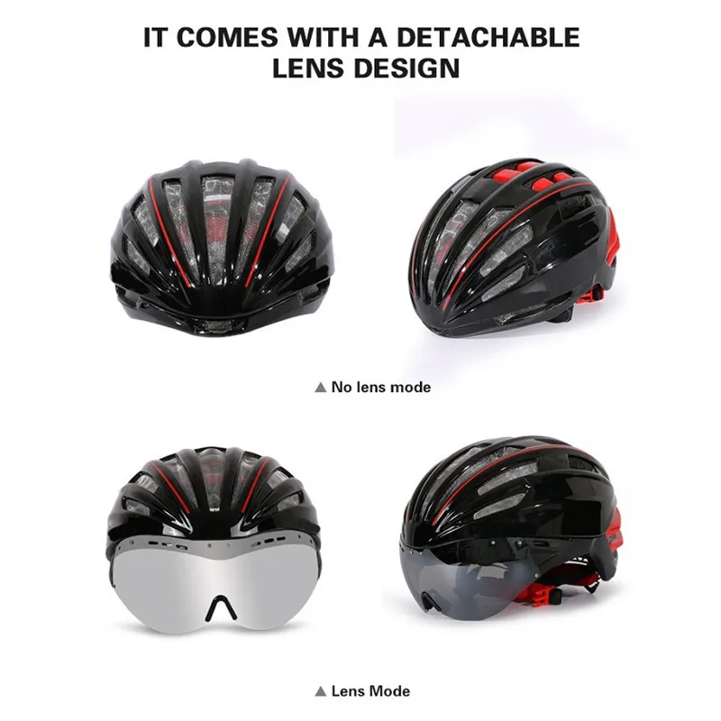 3 Lens 280g Aero Goggles Bicycle Helmet Road Bike Sports Safety In-Mold Helmet Riding Mens Speed Airo Time-Trial Cycling Helmet